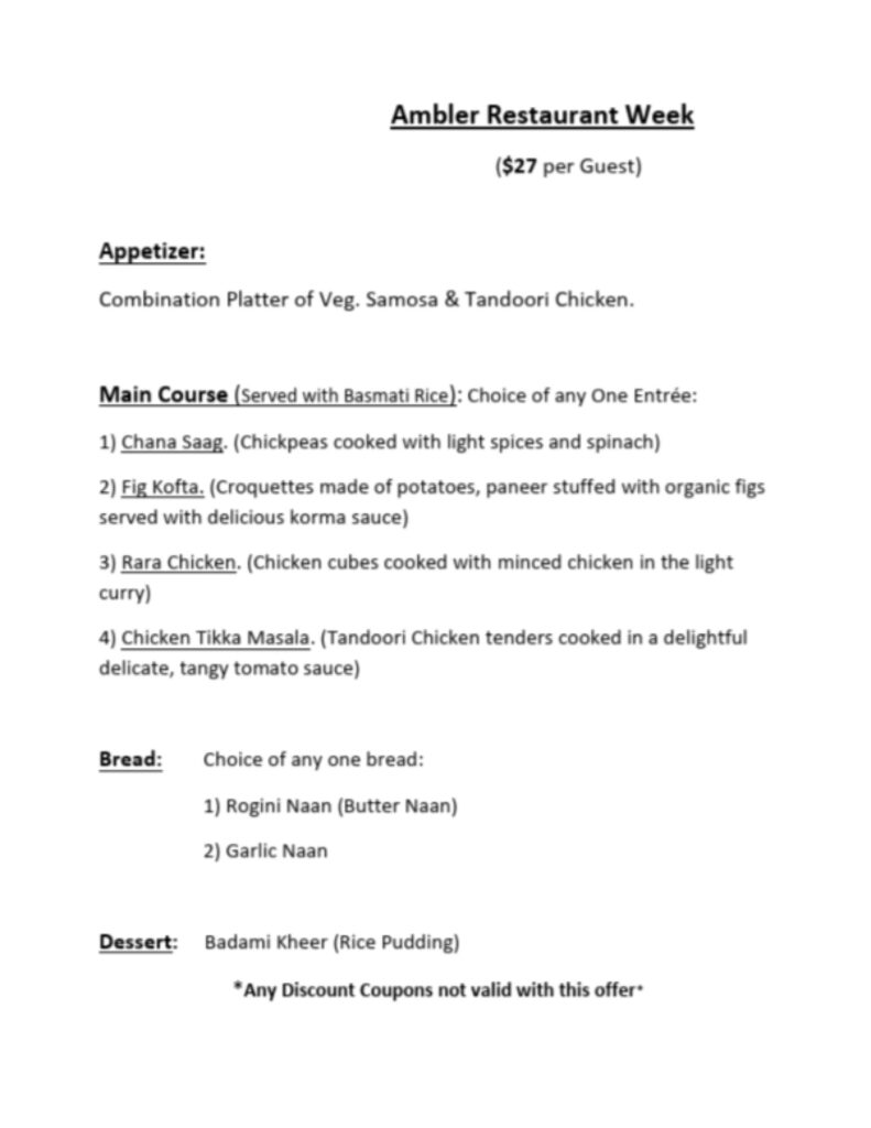 $25 Per Person Menu